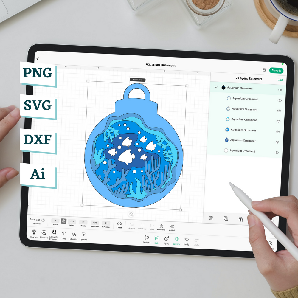 With this water ornament cut file, you can make a beautiful papercraft embellishment for your holiday cards or any project. Get your own piece of ocean!
