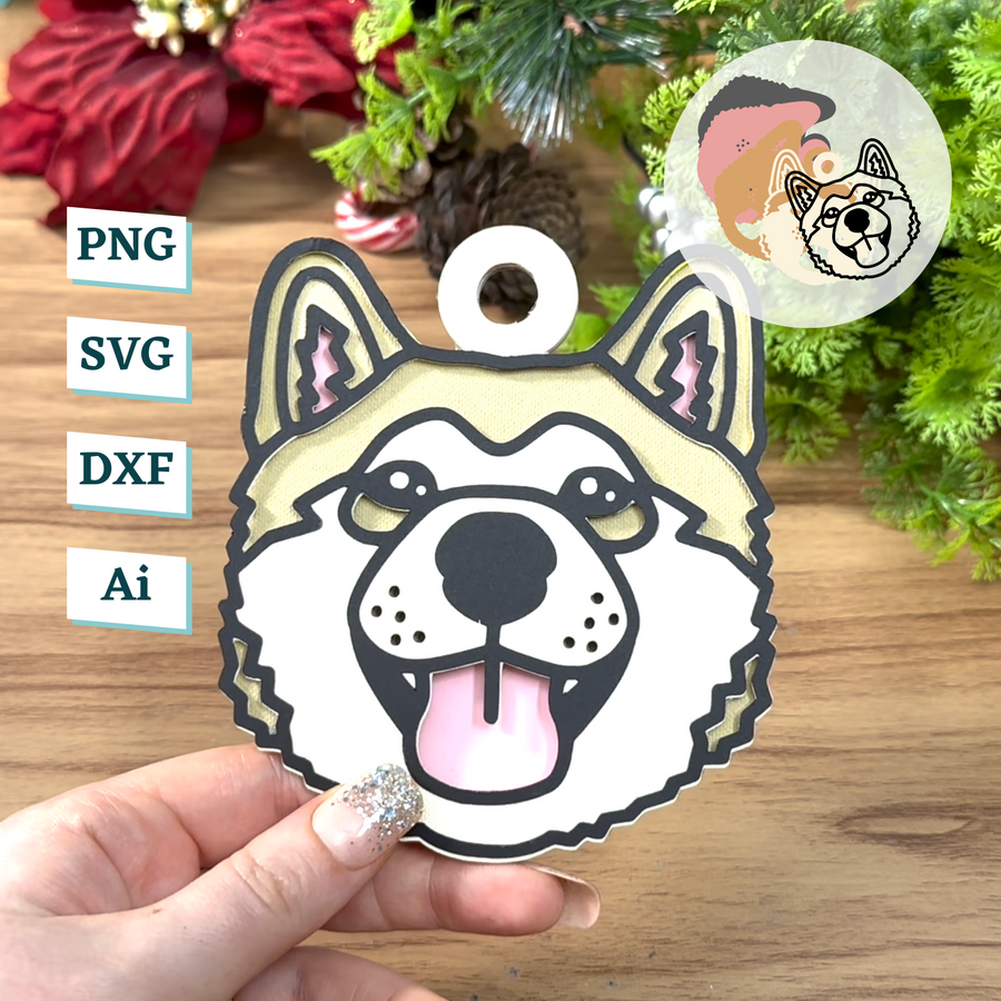 This Shiba Inu dog ornament cut file in PNG, SVG, DXF, Ai and layered.