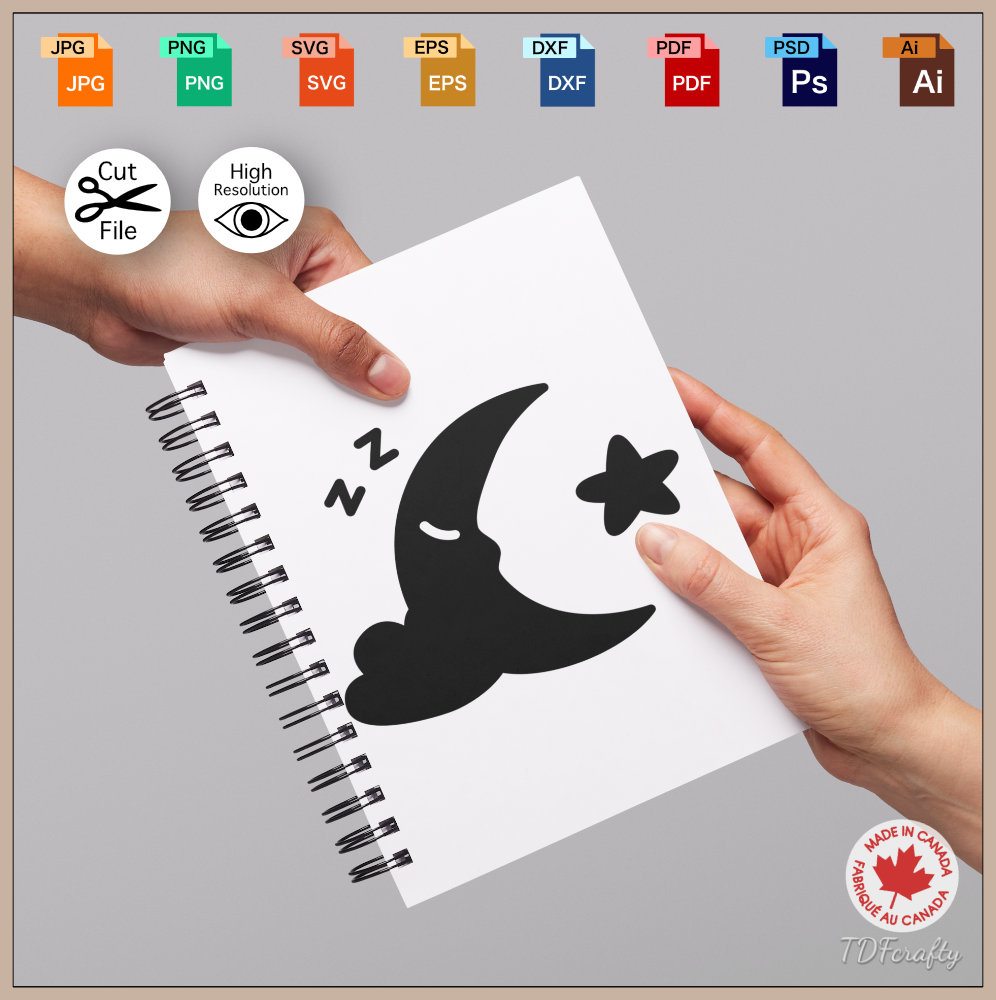 The Sleepy Moon in Clouds with a Star SVG Graphic Design is a high-quality vector graphic that can be used for a variety of purposes, including but not limited to:
