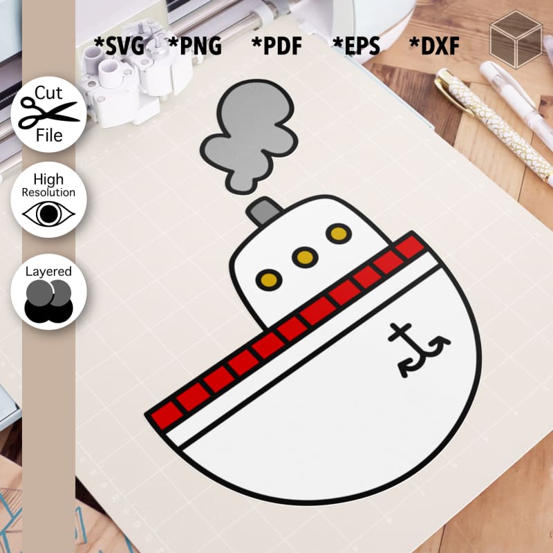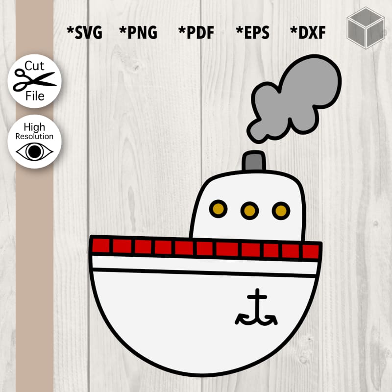 This Cartoon Steam Boat is perfect for projects like engraving, vinyls and printing! You can also use it as part of your icon! The inspiration for the Cartoon Steam Boat comes from the Sea.