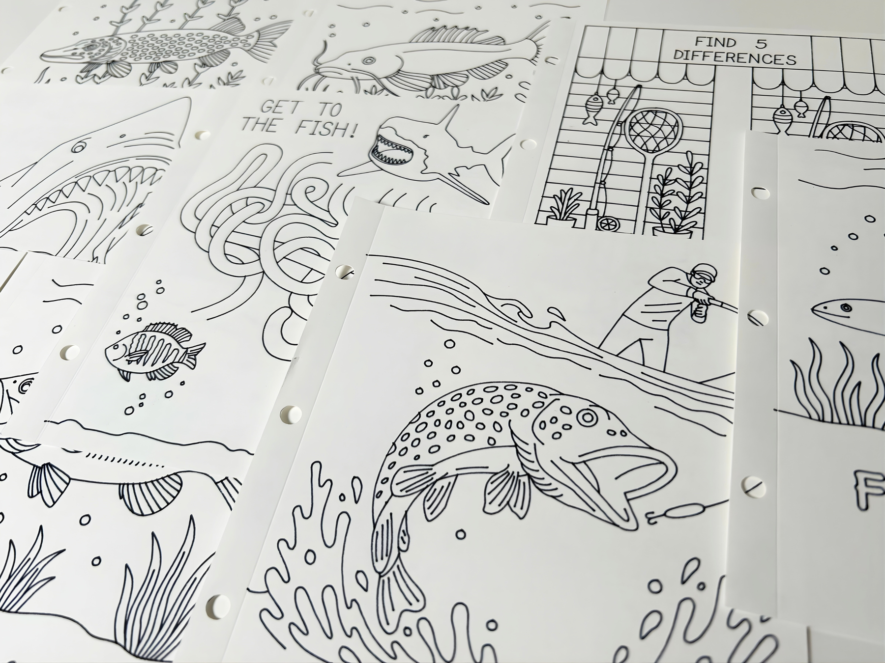 The fishing activity book is a digital download template for cutting machines. Featuring colouring pages, find the difference, maze and learning all about different type of fish. Perfect for kids ages 5+.