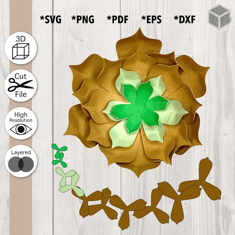 Su descarga incluye los gráficos Suculentas de papel en capas florales en: