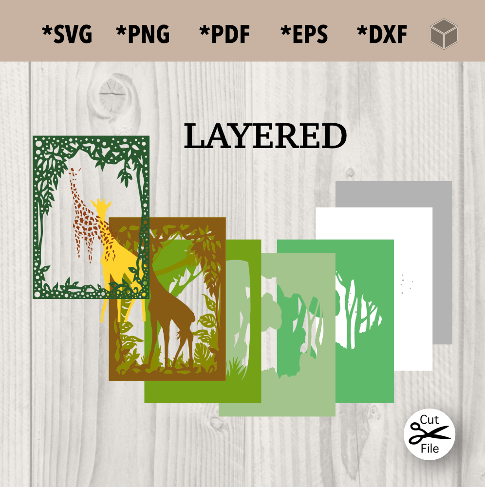 Esta plantilla de cartulina en capas de bosque de jirafas es un regalo increíble para alguien que ama la naturaleza.