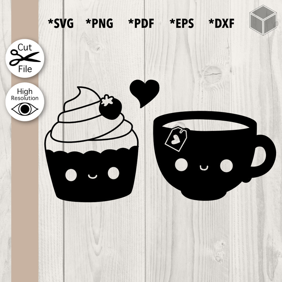 Tu descarga incluye el gráfico cupcake and tea couple silhouette en: