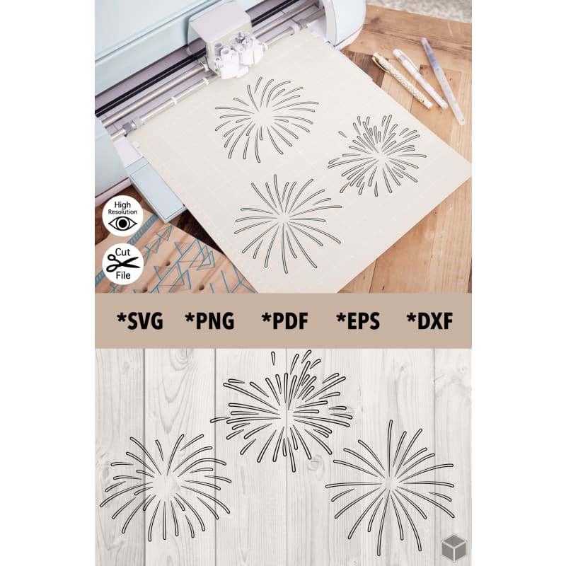 Estos diseños de imágenes prediseñadas vectoriales de contorno de fuegos artificiales forman un increíble conjunto de diseños digitales para todas las necesidades de su fiesta.