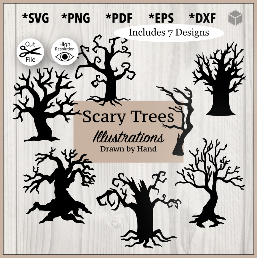 Votre téléchargement inclut les graphiques Spooky Trees dans :