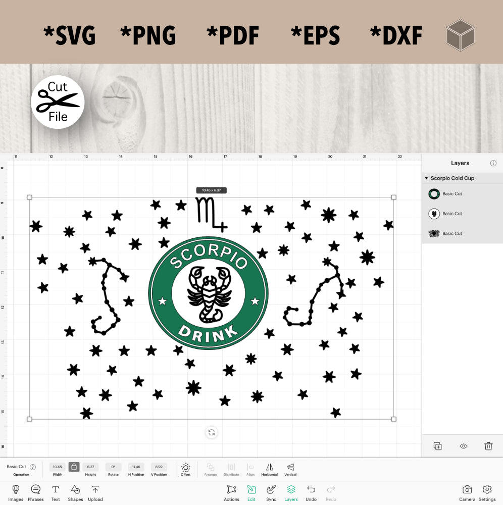 Create a custom astrology to-go to drink from with this Scorpio constellation cup wrap template for 24 oz cold cups! Perfect for birthdays!